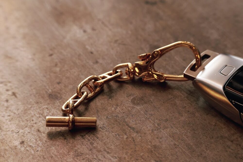 ゴールドのアクセサリーアクセサリー欲に駆られていた頃に手に入れたHERMESのキーホルダー。シルバーで作られた個体は見ることがあるが、ゴールドで作られたものは稀有な存在。軽々しくキーホルダーとは言えない金額でコレクターも存在するようだ。