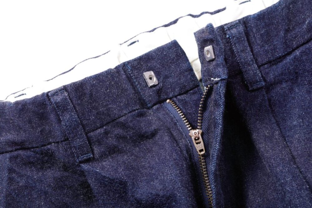 オリジナルのセルビッジデニムを採用したスラックスは、ほどよくゆとりのあるシルエットと穿き心地の良さからデイリーに穿きたくなる一本だ。濃色ワンウォッシュから穿き、一から育てる愉しみを味わうことで自分だけのSugarのような相棒になってくれるのが理想だが、このモデルにはエイジングモデルも用意され、買ったその日からデニムの色落ちと、こなれ感が欲しいという人に嬉しいラインナップとなっている。