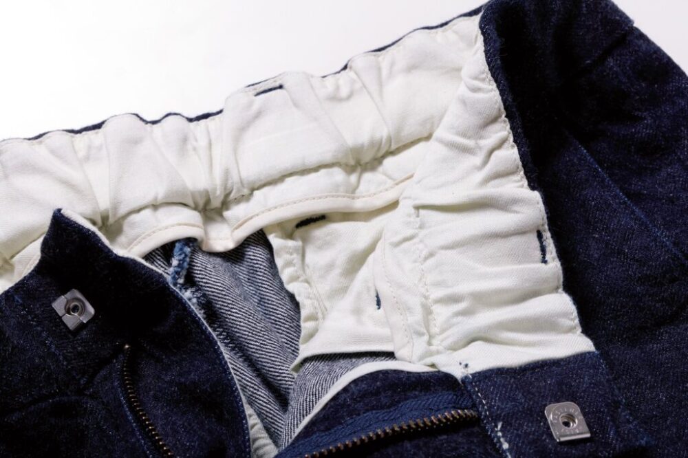ウエスト内側にはゴムが仕込まれており、リラックス感のあるディテール。