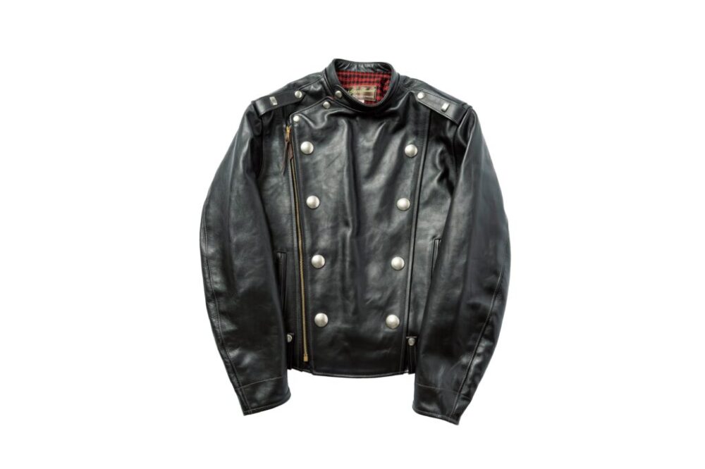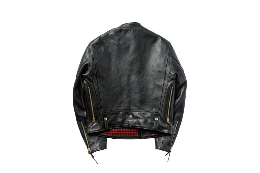 フロントの大型の比翼は遮風性の高さに加え、大きな装飾ボタンが反射板の役割を担うなど機能面も優れており、ライディングジャケットとして理にかなった設計であることがよくわかる。レザーはタンニン鞣しの馬革にピグメントフィニッシュを施した重厚なレザーを採用。ライナーにはクラシカルな千鳥格子のウール生地を用いており、見た目も着心地も当時の空気感を纏った仕上がりに。