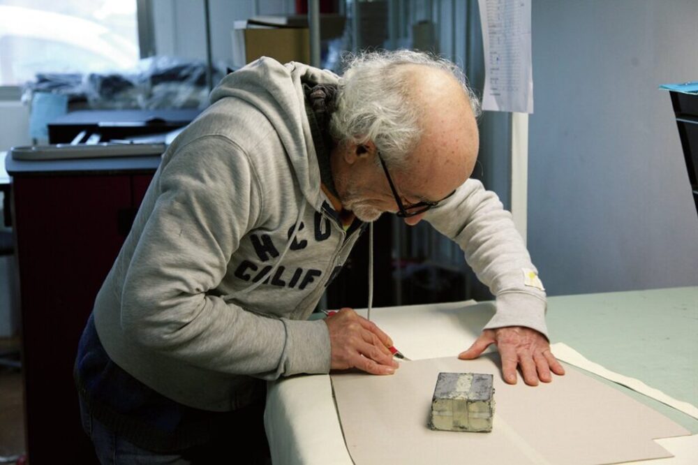 2014年に作られた小物用のファクトリー。GUIDIの革小物は世界中で人気を博している。白鞣しの革を裁断している。こうした細やかな職人技が、GUIDIブランドを支えている。