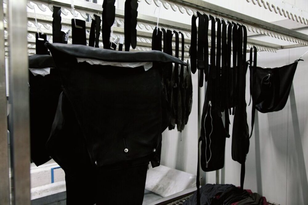 GUIDIのオリジナル製品は、靴やベルト、バッグなどの多岐に渡る。中には製品染めを行ったり、ヴィンテージのような質感を生み出すためにタイコで回した革を使うことも。