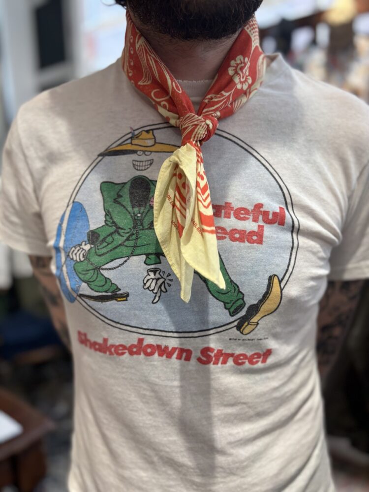 ロンドンの印刷会社The Printer’s Devilとのコラボレーションで作られた「スネイルブランド」による日本製のバンダナ。よくある53cm規格よりもひと回り大きい60cm四方サイズで、Tシャツや襟付きシャツの上から首に巻けば、ほどよい存在感でサマになる一枚だ。色は4色展開で、中でも一番の人気はベージュ地に赤のデザイン。