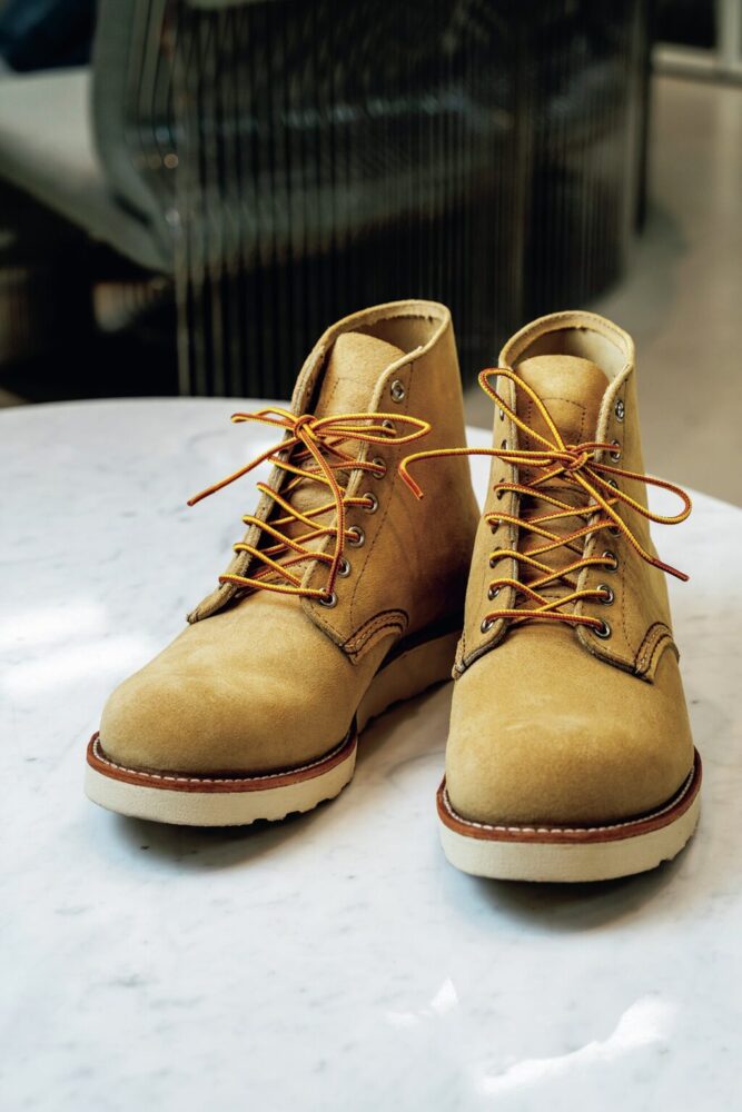 BEAMS本社にアーカイブとして飾れている1995年当時の貴重な別注RED WING。「初めての別注でしたが、その後インライン化するなど、日本発のアメカジスタイルのスタンダードになれたのが、同社として誇らしいところ」