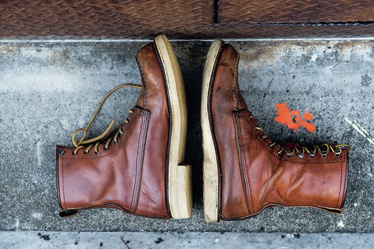 「良い意味でタフな簡単な作りで、例え職人に技術がなくても、それをカバーできる考え抜かれた仕様と生産背景があるのが、偉大なんです。大量生産を前提としたグッドイヤーウェルト製法のワークブーツで、コスト、クオリティともに申し分なく、これを実現できるのはRED WINGだけではないでしょうか。なんと言ってもタフなんですよ。リペアの際に純正の糸を提供してもらったのですが、とてつもなく頑丈で。日本の方が細かいモノ作りをしていますが、耐久性は間違いなくアメリカですね」