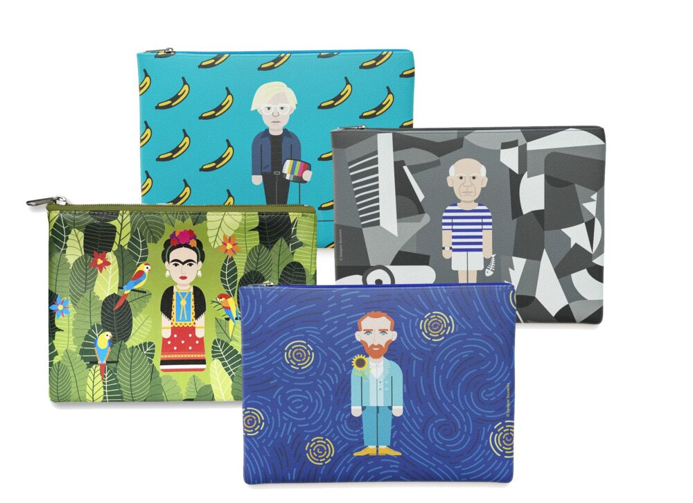それぞれの画家を象徴するモチーフを全面に配し、デフォルメされた可愛らしいアバターが描かれている。それぞれのアーティストの名言の名前が付いている。アート、伝統、現代文化を日常生活に取り入れ、ユーザーの笑顔を引き出すためにユーモアを交えたイラストでメッセージを伝えている。(素材はフェイクレザー)