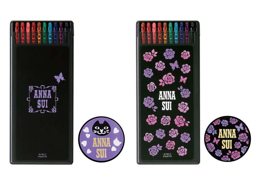 「ANNA SUI」の人気のある柄がデザインされた3色用と4色用の2種類のボディを揃えた。3色用のボディには、ブランドイメージである黒や紫、白をベースに、ハートやフラワー、バタフライなどのモチーフをあしらった6柄を、4色用のボディには、黒をベースにブランドロゴやバラのモチーフを入れ、メタリックのパーツを使用したシンプルな2柄を展開。オリジナルマスキングテープ付きのジュエルモチーフの限定レフィルケース入り10色セットも同時発売される。