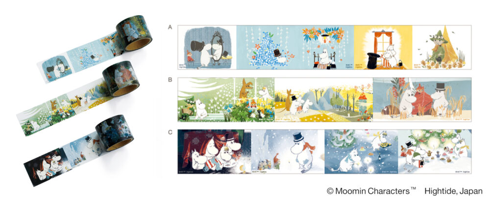 向こう側が見える透け感と水彩画の雰囲気が綺麗なマスキングテープは、ほかにはない絵本の絵柄をチョイス。瓶やアクリルなどの透明素材に貼れば、より透明感を楽しむことができる。キャラクターが目立つデザインなので、手帳やノート、ラッピングなどのD.I.Yにもおすすめ。3種類のうちタイプCのウィンターホリデー柄は数量限定なので欲しい方はお早めに。