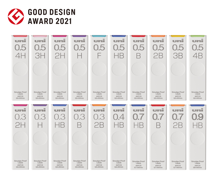 片手のスライド操作で簡単に開閉し、スムーズに芯を取り出すことができるスライド式の芯ケース。真の太さを書体の太さと同期させたり、文字と色で芯の硬さを伝えるなど、 直感的なわかりやすさに細かく配慮されている。中央に設けられた親指でホールドするくぼみなど、意匠と機能をうまく合わせている点などが評価された。