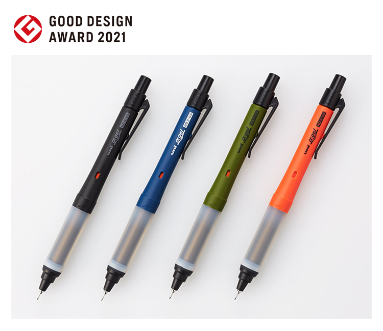 常に尖った芯で書き続けることができる“クルトガ”機能に安定の筆記感が加わった新モデル。奇をてらう仕掛けは何もないが、手になじむグリップと、字を書くことに集中できる高性能な機構により、シャープペンシルの新しいスタンダードを牽引し続けていることを評価したい。