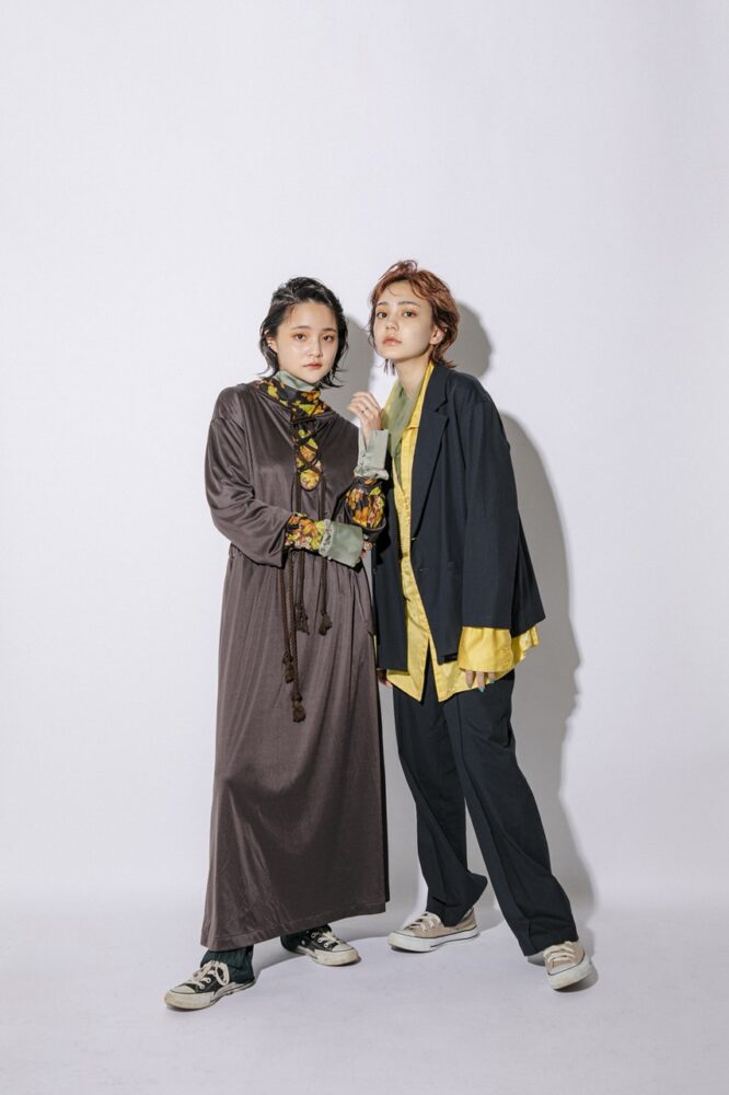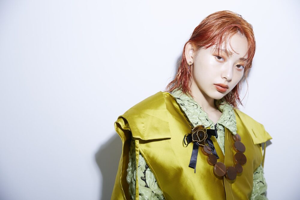 特別企画「髪と糸~美容師がデザインする服と髪~」は、美容師自らがデザインした服と、その服に合うヘアによるビジュアルを、前坂美来乃さん(SHEA)、堀江昌樹さん(JENO)、かえでさん(Cocoon)、前田隆太さん、Renaさん、Ryoheiさん(Lomalia)、高橋脩馬さん(HANA)が提案。『SHEA』チームがデザインしたのは、紐をアクセントにしたワンピースと、ジェンダーレスなセットアップ(写真参照)。