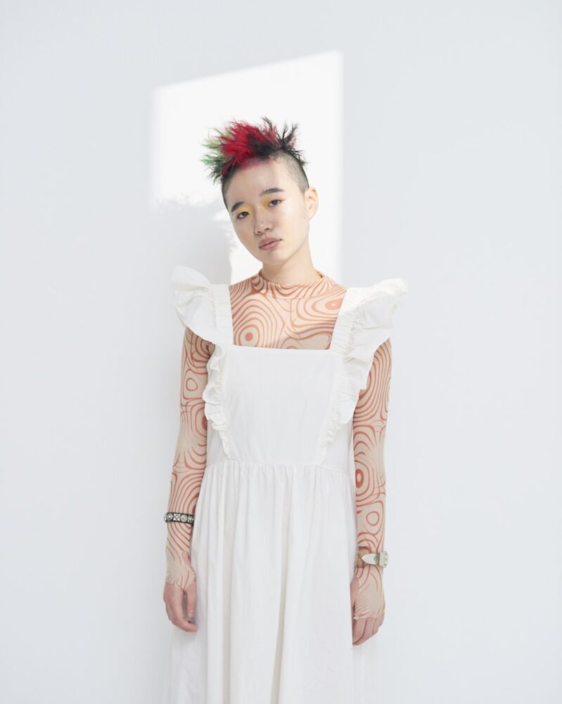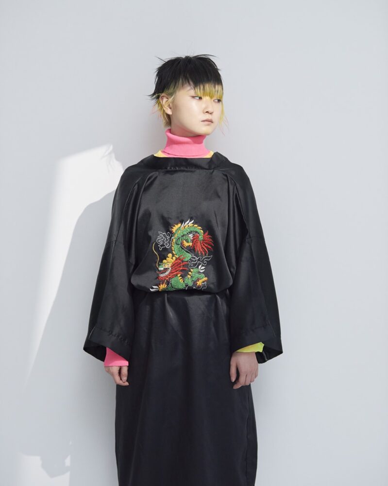 特別企画「髪と糸~美容師がデザインする服と髪~」は、美容師自らがデザインした服と、その服に合うヘアによるビジュアルを、前坂美来乃さん(SHEA)、堀江昌樹さん(JENO)、かえでさん(Cocoon)、前田隆太さん、Renaさん、Ryoheiさん(Lomalia)、高橋脩馬さん(HANA)が提案。『SHEA』チームがデザインしたのは、紐をアクセントにしたワンピースと、ジェンダーレスなセットアップ(写真参照)。