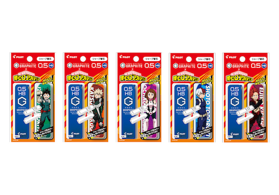 「ヒロアカ」キャラクターイラスト入りのオリジナル芯ケースカバー付きのシャープ替芯『ネオックス・グラファイト』は、高純度グラファイトを使用した濃くなめらかな書き味と芯の強度を追求したシャープ替芯だ。