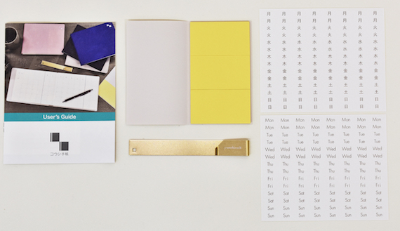 付属品:オリジナル定規(10cm)、専用サイズふせん(60枚)、曜日シール(英字・日本語)、ガイドブック