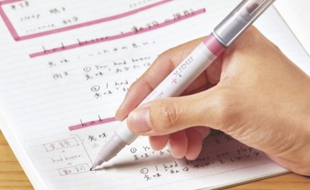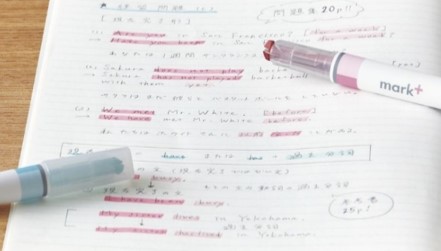 1本でラインマーカーと文字書きができるペン。ラインマーカーはチカチカしにくく、下の文字も読みやすいインク色で、極細ペンは線幅0.3mmで細かい文字も書きやすい。