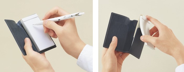 カードサイズメモとペンを一緒に持ち運べるメモカバー。KOKUYO MEカードサイズメモと組み合わせることが可能。
