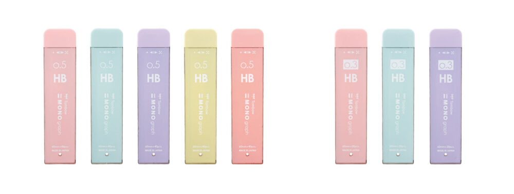MONOは、これらカラーをシャープペンシル「モノグラフ」、シャープ芯「モノグラムMG」、消しゴム「モノ」、ホルダー消しゴム「MONOスティック」、修正テープ「モノエアーペンタイプ」の5アイテムで展開。Campusは、これらカラーをドット入り罫線を採用した2022年度版「限定キャンパスノート(5冊のパック)」で展開する。