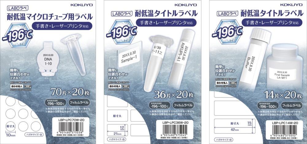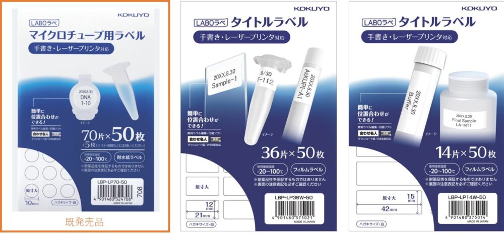 これまでコクヨは2016年に「マイクロチューブ用ラベル<LABOラベ>」を発売し、マイクロチューブを大量使用するユーザーから支持されてきたが、マイクロチューブ以外の容器にも対応するサイズを求めるニーズに着目し、バリエーションの拡大を実施。