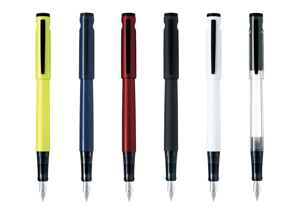 ボディカラーは、明るい印象のイエロー、ネイビー、レッド、ホワイトの他、インキの色が楽しめるノンカラーやマットな質感で落ち着いた雰囲気のブラックなど6色をラインナップし、使う人の好みに合った1本を選ぶことができる。