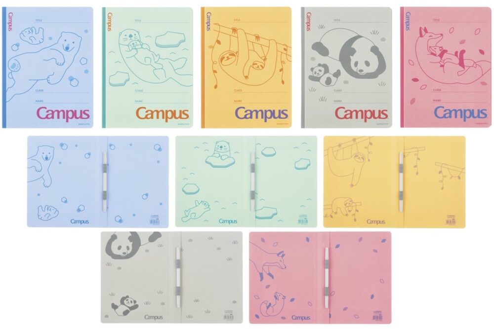 バリエーションは、シロクマ、ラッコ、ナマケモノ、パンダ、キツネの5種類で、単冊のほか3冊パック(シロクマ、パンダ、キツネ)もある。また、2021年2月より販売中の「キャンパスノート(用途別・アニマル柄)」とお揃いで持つことで、よりかわいく使うことができる。