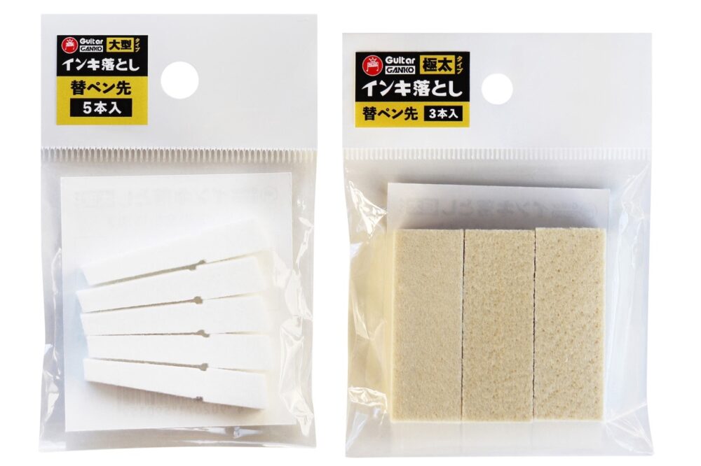 油性・水性インキ、パス、クレヨンなどを簡単に除去出来る「ギター ガンコ インキ落とし」に、1月5日(水)より、補充液と替ペン先が新登場。