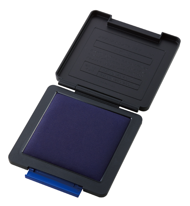 大きな丸型や角型のゴム印もキレイに押せる、100×100mmの盤面サイズ。インキも黒・赤・藍色・緑・朱色・紫の6色。本体に抗菌剤を使用しており、細菌の繁殖を抑制する。色鮮やかでクッキリ濃い印影が、約3秒で乾く(PPC用紙の場合)。インキが薄くなると盤面にマークが浮き出て、 補充時期をお知らせ。また、インキ補充ができるので、繰り返し使うことができて経済的。