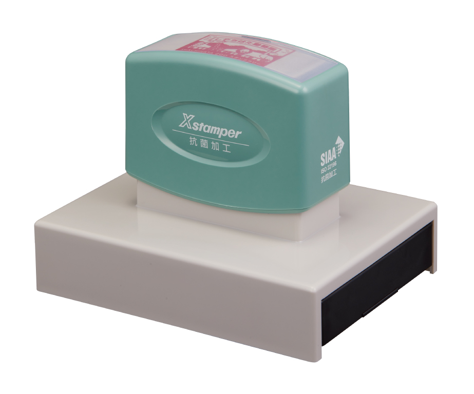 「角型印65100号 抗菌」は、駅や空港、テーマパーク、観光名所など、場所に合わせて印面をデザインできるインキ内蔵式のスタンパー。今回、グリップ部分を抗菌加工した仕様で新たに発売する。