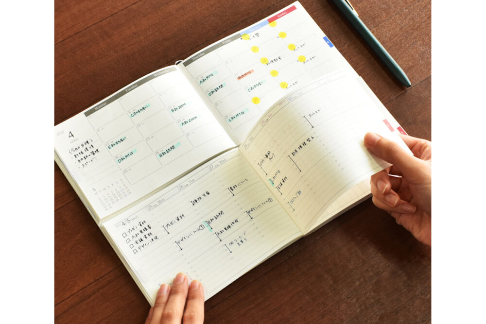 週間と月間の予定・日々のTODO管理を見開き1ページで確認できる。