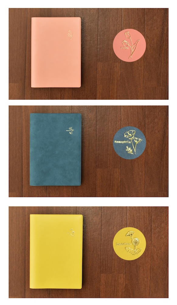 手帳カバーは春の花が箔押しされた「ワンポイントカバー」、手に馴染みやすい姫路レザーを使用した「シュリンクカバー」を新しく投入し、全8タイプ39色の展開となる。