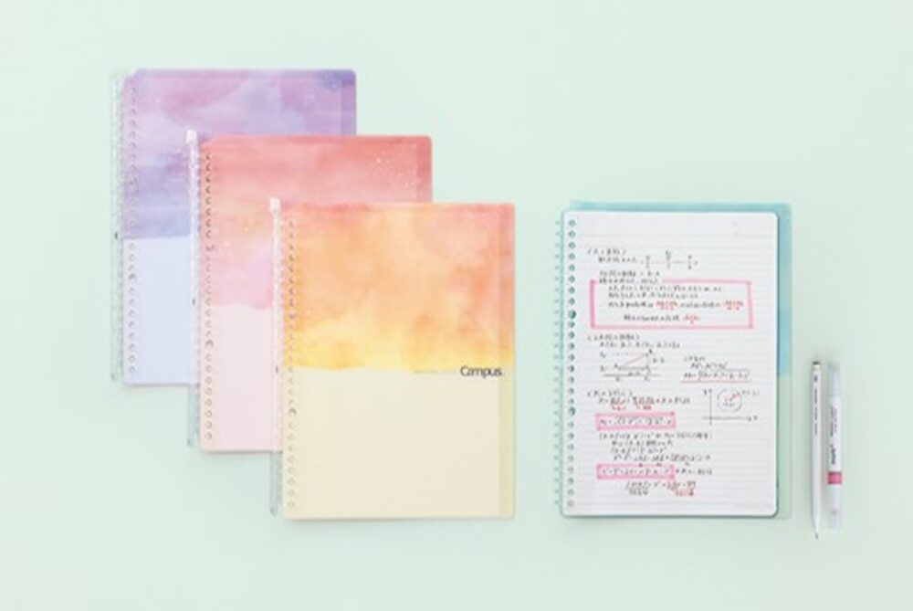 ルーズリーフを使った勉強スタイルをサポートする関連文具2アイテムから、エアリー感のある優しいトーンの水彩グラデーションの限定柄「パステルグラデ」を、本日1月19日(水)から発売開始。
