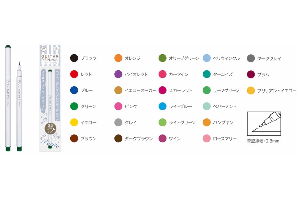 新ラインアップの水性カラーペン「ギターペンプチ」が1月21日(金)より新発売。全27色の豊富なカラーバリエーションから好きな色を選ぶことができる。