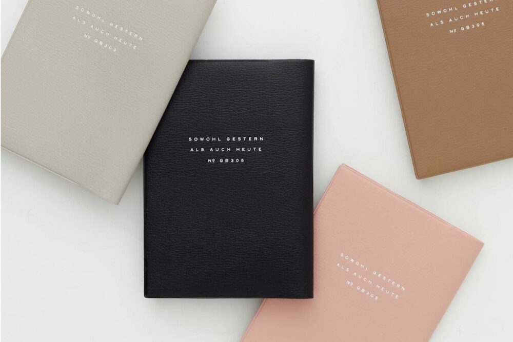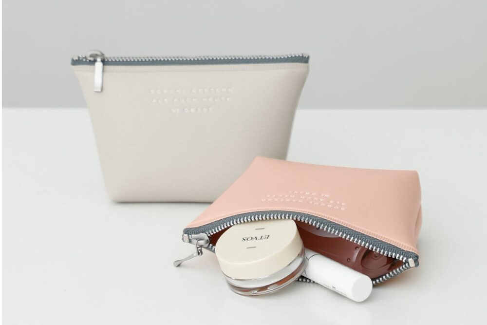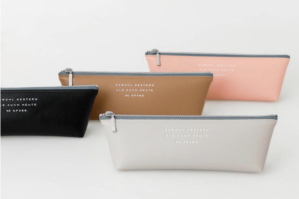 ポーチやパスケース、PCバッグなどデイリーに活躍するアイテム全9種類がラインナップ。定番としてずっと愛用し続けて欲しいという思いを込め、各アイテムには「昨日も今日も」という意味のドイツ語が刻印されている。