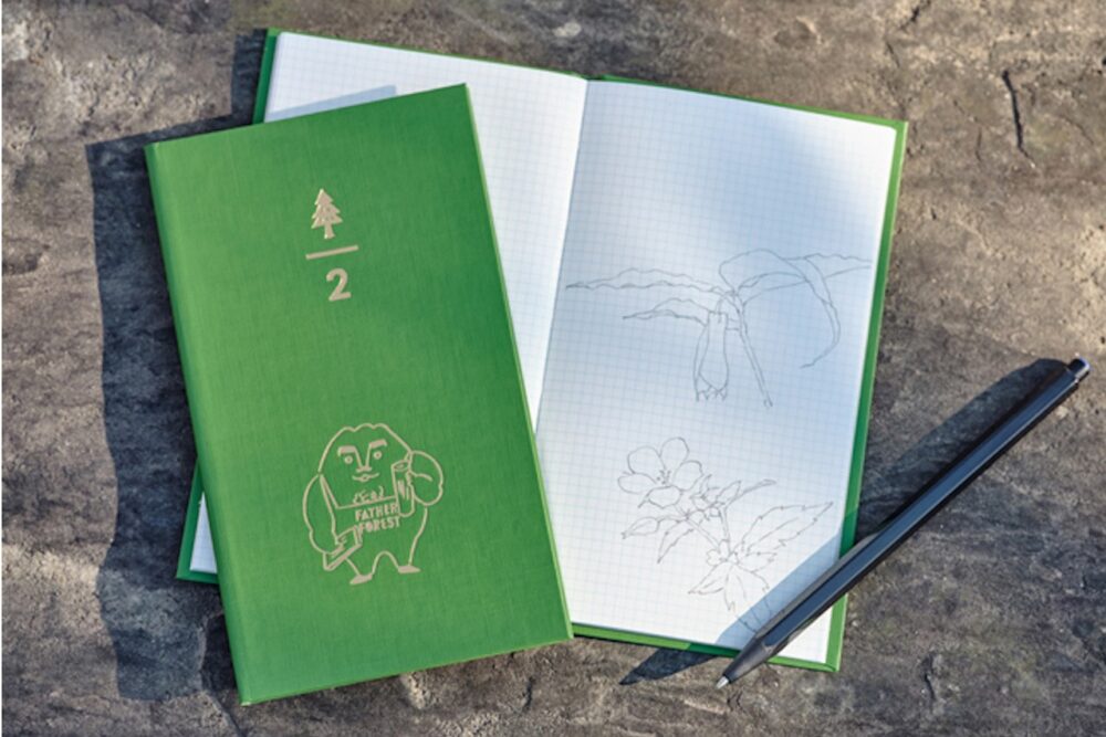 今回発売する「ニブンノイチ野帳」は、滋賀県の森林面積が県土面積の約1/2を占めることからついた商品名にもあるとおり、滋賀の森林に焦点をあてた測量野帳だ。