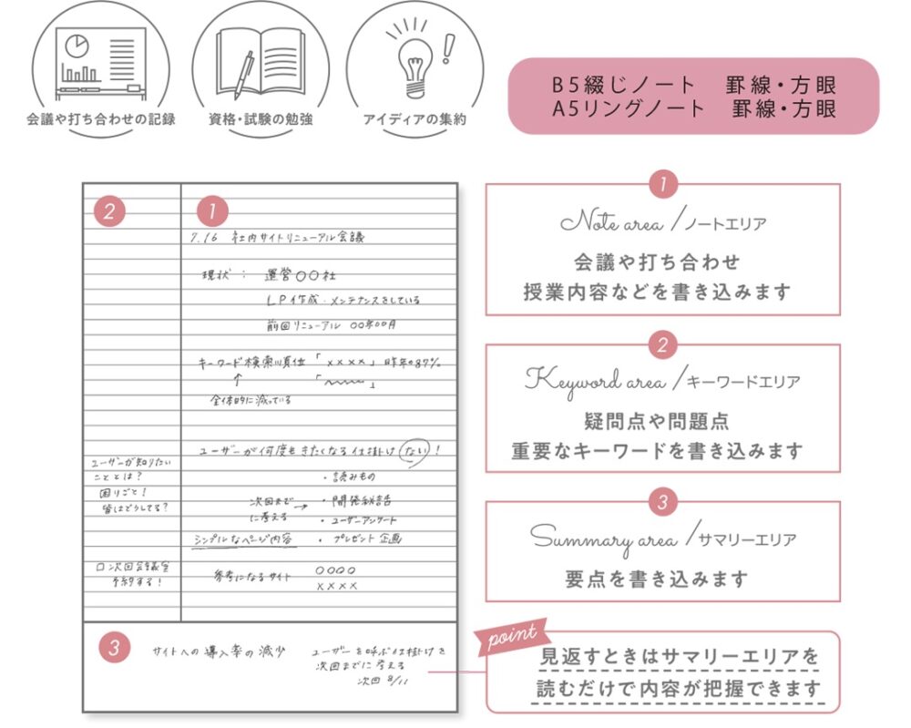究極の情報整理ノートシステム『コーネルメソッドノート』のsimple&sweetなテイストのシリーズが発売開始された。