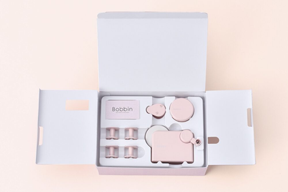 今回、多くのご愛顧に感謝し、「ボビン」を購入された方へのアンケートにて人気の高かったカラーである“くすみピンク”を採用したツールセットとボビン芯を、数量限定で発売。