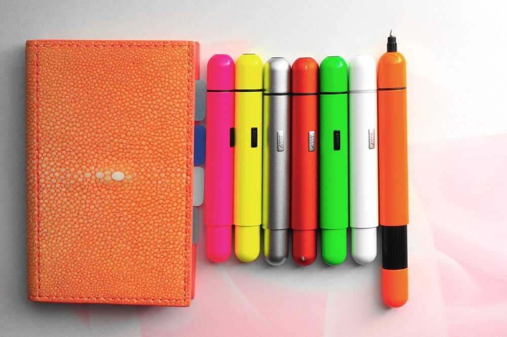 ボタンでもなく、ツイストでもない。軸そのものをノックする。だから握ってから一瞬で書く態勢にできる。即書きをするためのボールペンとして理想の構造だ。自分が使っているピコの定位置はフライトジャケットの左上腕部のペン差しだ。夏は、ズボンのポケットに無造作に入れている。かなりハードに使っており、いろいろなものにぶつけてしまうので全身傷だらけだが、とても堅牢でトラブルはゼロ。「本当はマッチョな俺」をこっそり主張するマットブラックとインペリアルブルーの使用頻度が高いが、数年前から始まった限定カラーも気が付けば引き出しに全色並んでいた。これらはまさに猫かぶりな色。本性とネオンカラーとのギャップもまた楽しい。
