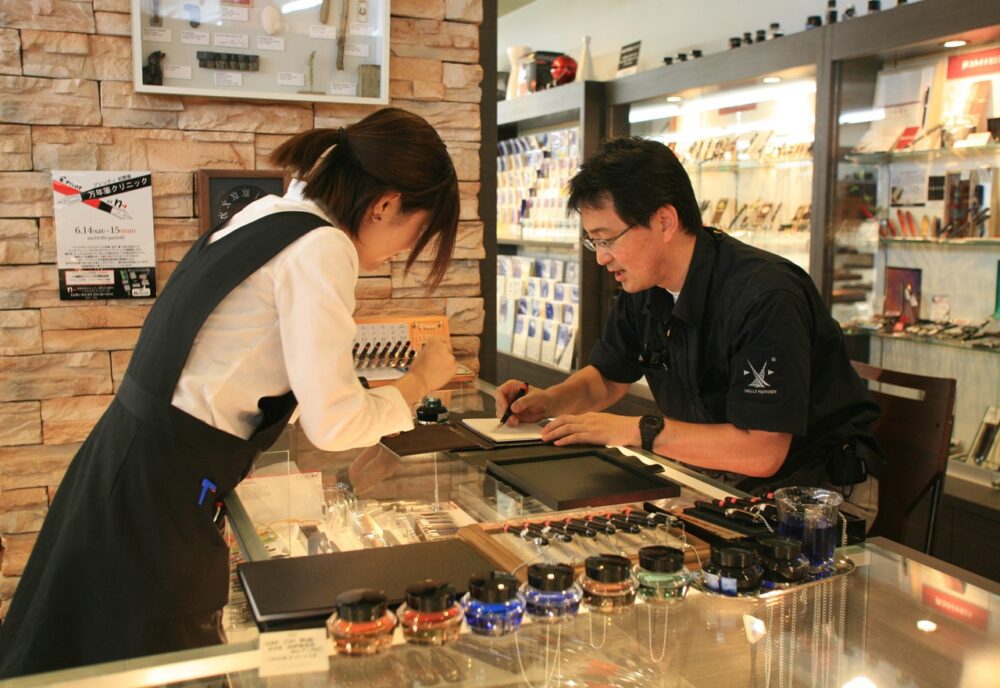 前提となるのは、きちんと試し書きや書き比べができ、相談に乗ってくれる店員がいる店を選ぶこと。また万年筆売場の試筆用紙は万年筆との相性が良い上質紙が多いので、自分が普段よく使う用紙や一般的なコピー用紙などを持参して、試させてもらうのもおすすめだ。