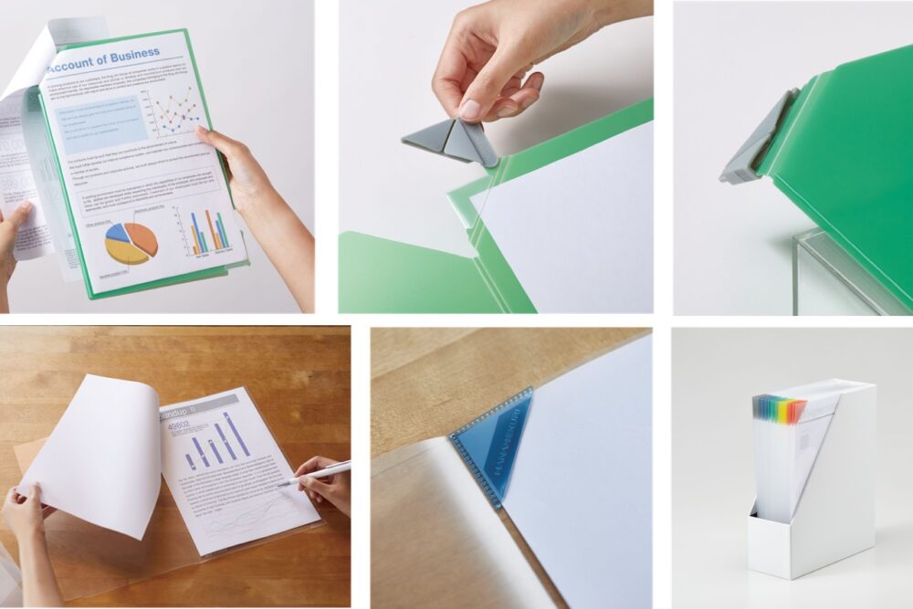 書類をホチキス留めされた資料のようにナナメにめくれる書類収納用品「ナナメクリファイル」「ナナメクリホルダー」を2月4日(金)に発売開始。