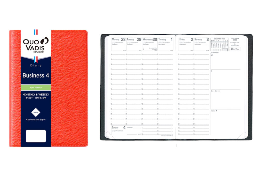 フランス生まれの「クオバディス」。世界で初めて見開きページに一週間をオーガナイズしたバーチカルタイプのアジェンダプランニングダイアリーを中心に、バ リエーション豊富に展開。かつて「発明」と呼ばれたクオバディスダイアリーは、1954年のブランド誕生以来半世紀を超えて、60カ国以上の人々に愛用されている。