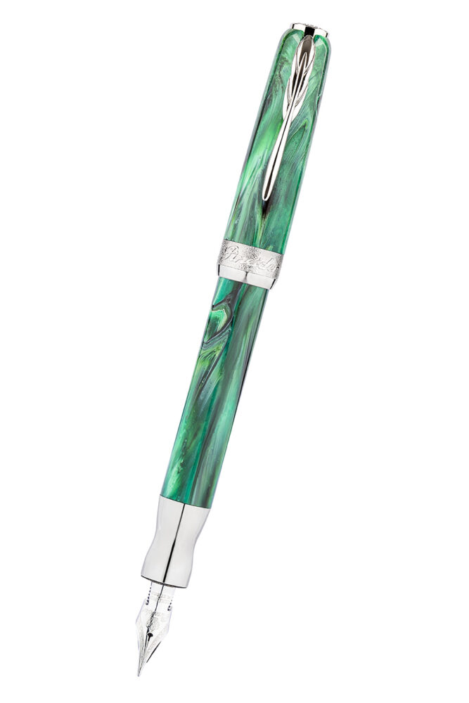 1988年にイタリア・フィレンツェに設立。筆記具の新しい可能性を探求している個性的なブランドだ。クレセントフィラーやパワーフィラーなど、伝統の吸入機構を現代風にアレンジしたモデルも多数。黄金比を万年筆のデザインに取り入れた「ディヴィ―ナ」や、名画をモチーフにした「ヴァン・ゴッホ」シリーズなど、芸術、文学、歴史などの幅広い分野をソースに万年筆を美しく手がけている。