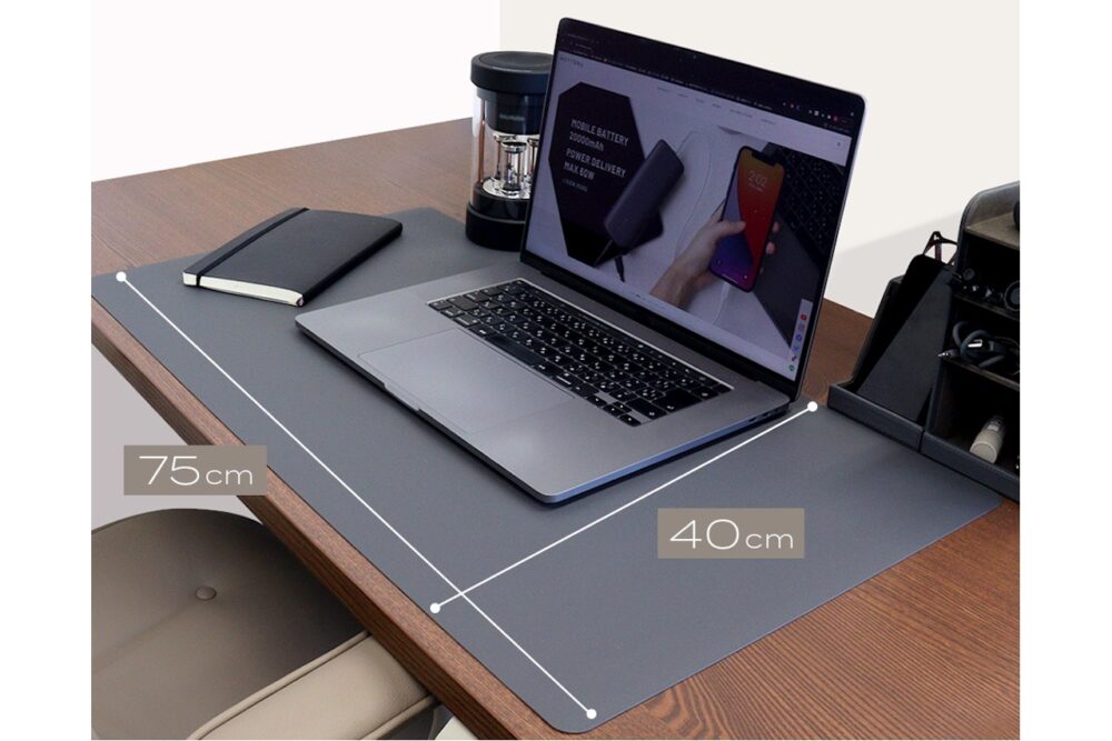 大きめの横75cm・縦40cmのデスクマットで一枚敷くだけで、デスク周りの印象が変わる。カラーも5色展開で、自分らしいインテリアコーディネートを楽しめる。生地は肌触りのいい、レザー風生地でしっとりと滑らか。縫い目のないシンプルな作りで、どんなデスクやテーブルに合うのも特徴です。パソコンを使う時にはマウスパットの代わりとして使用することができる。
