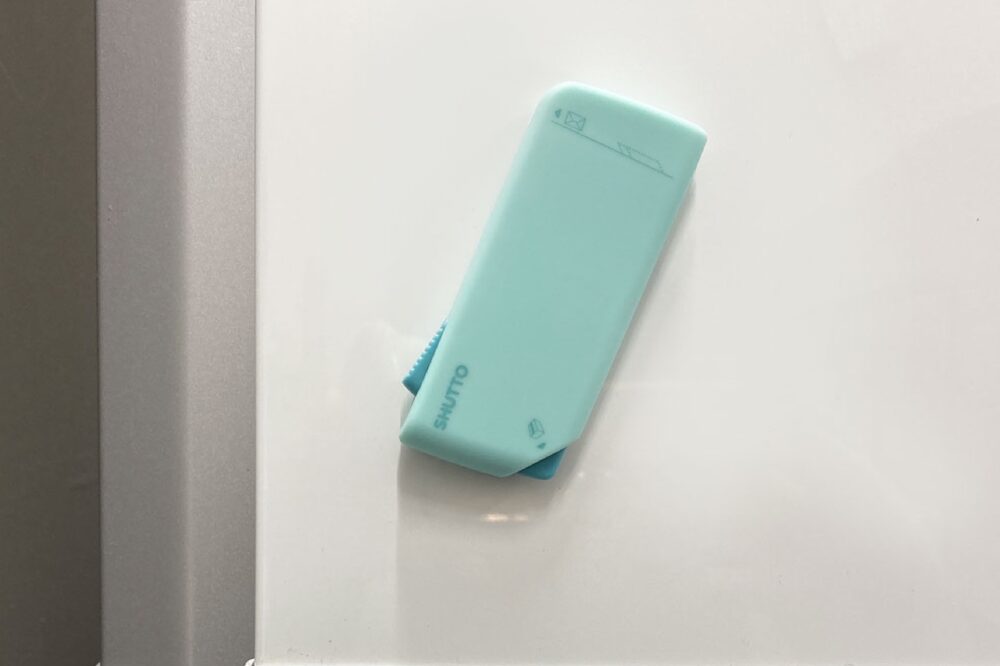 「レターオープナー」は、差し込んでスライドするだけで、手紙や封筒がラクラク開封。刃が外に出ていないので安心!マグネットがついており、玄関の扉や冷蔵庫にもくっつくので、わざわざ探しにいく手間も省け、すぐに使える利便性にも注目したい。