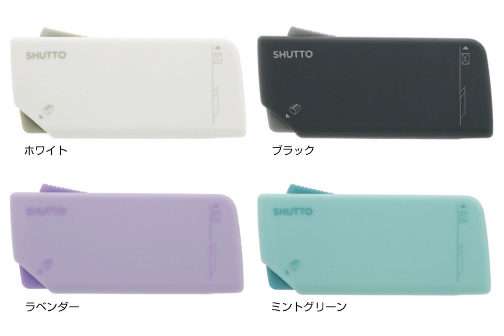 開梱カッター&レターオープナーが合わさった2WAYカッター「SHUTTO(シュット)」4色を2022年2月中旬より順次展開する。