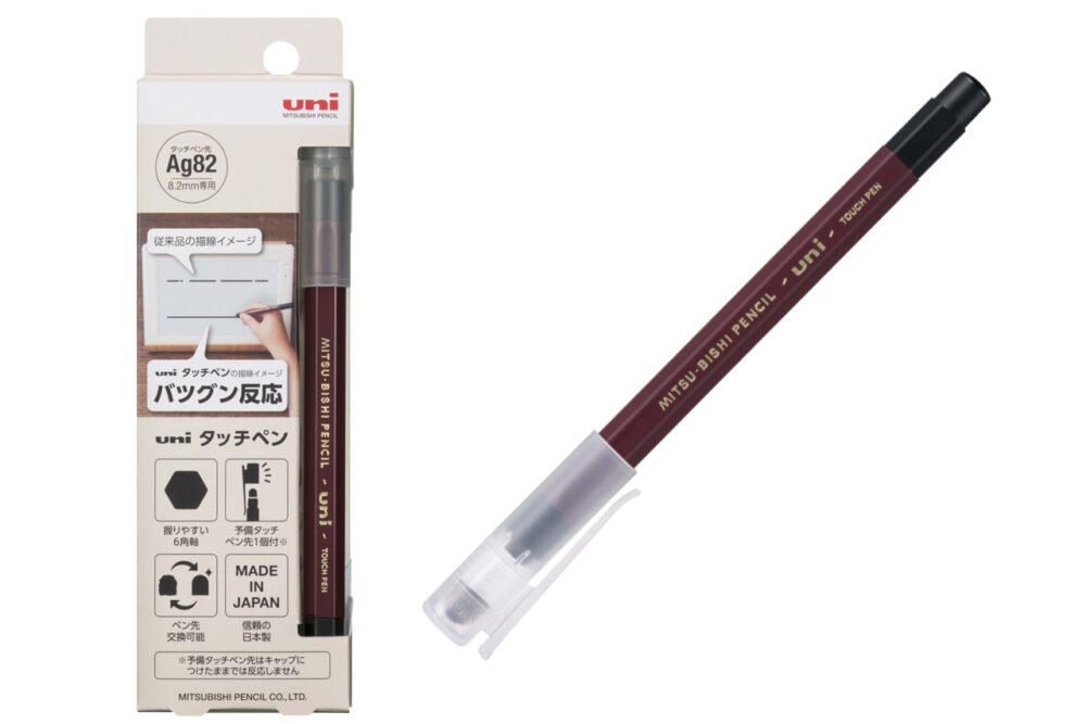 タッチ感度が高く安定した筆記が可能な“Ag ファイバーペン先”を採用し、替ペン先を1個キャップ内にセット。軸は、6角軸の鉛筆形状を採用しており、タッチペンでも鉛筆と同じ持ち方を身に付けることができる。軸色は三菱鉛筆の鉛筆「uni(ユニ)」と同じ、 “uni(ユニ)色”の高級仕立てとなっている。
