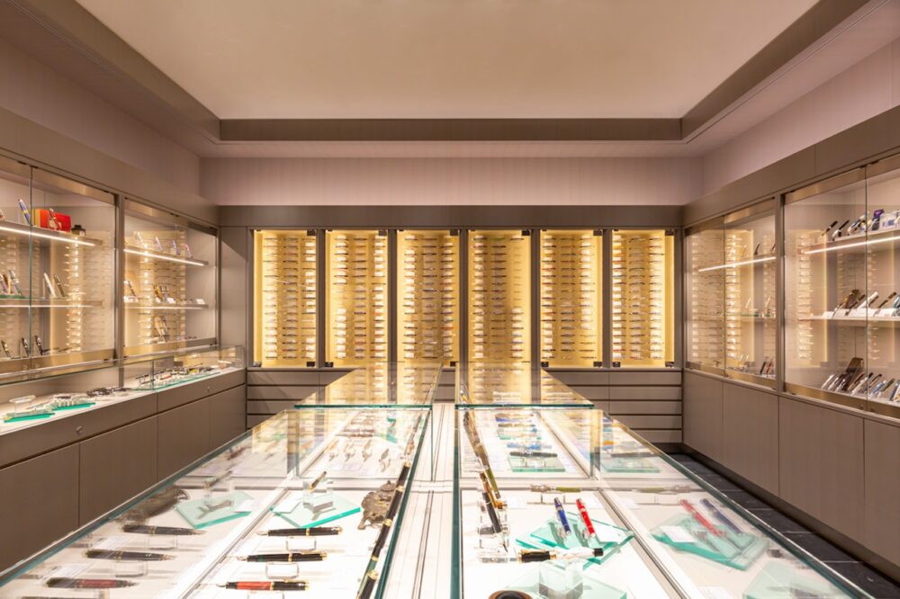 筆記具スペースでは、定番ブランドからイタリアらしい色鮮やかなブランドまで、国内外の約30ブランドの万年筆やボールペンを紹介。インクの品揃えも豊富で、常時3000本以上の筆記具を取り揃えほとんどの商品を試筆できる。