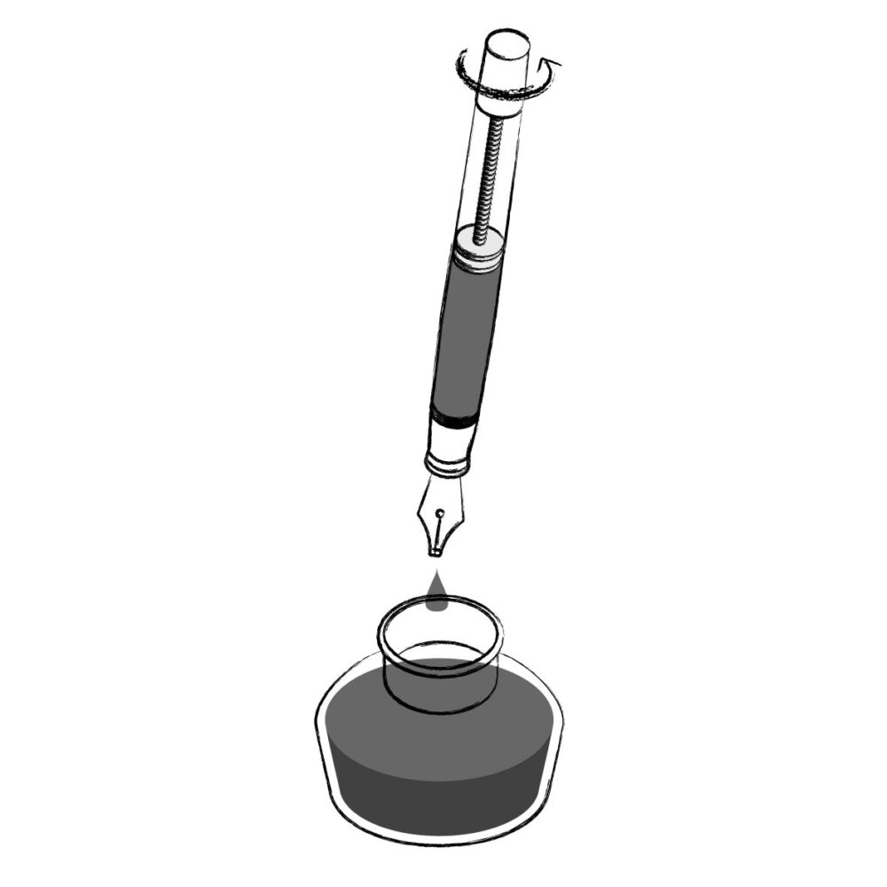 インクを選び、自分の手で吸入するのは、万年筆の大きな楽しみ。吸入の基本をおさえて何度か練習すれば、特に難しいことはない。ちょっと姿勢を正し、インクボトルのキャップを開け、愛用の万年筆に吸入する。その静かでスローな時間を楽しみたい。回転吸入式、両用式(コンバーター使用時)、カートリッジ式の各吸入方法は以下の通り。ペン先をインクに浸ける深さはメーカーで異なるので取扱説明書に従おう。