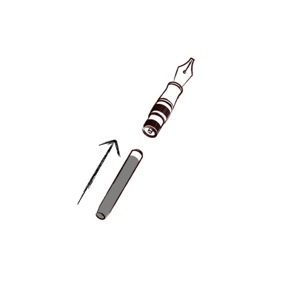 ペン先を上にしたまま、新しいカートリッジをまっすぐにしっかりと挿し込む。