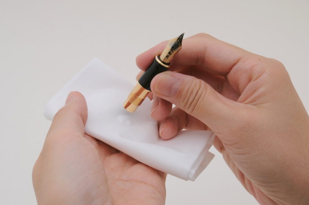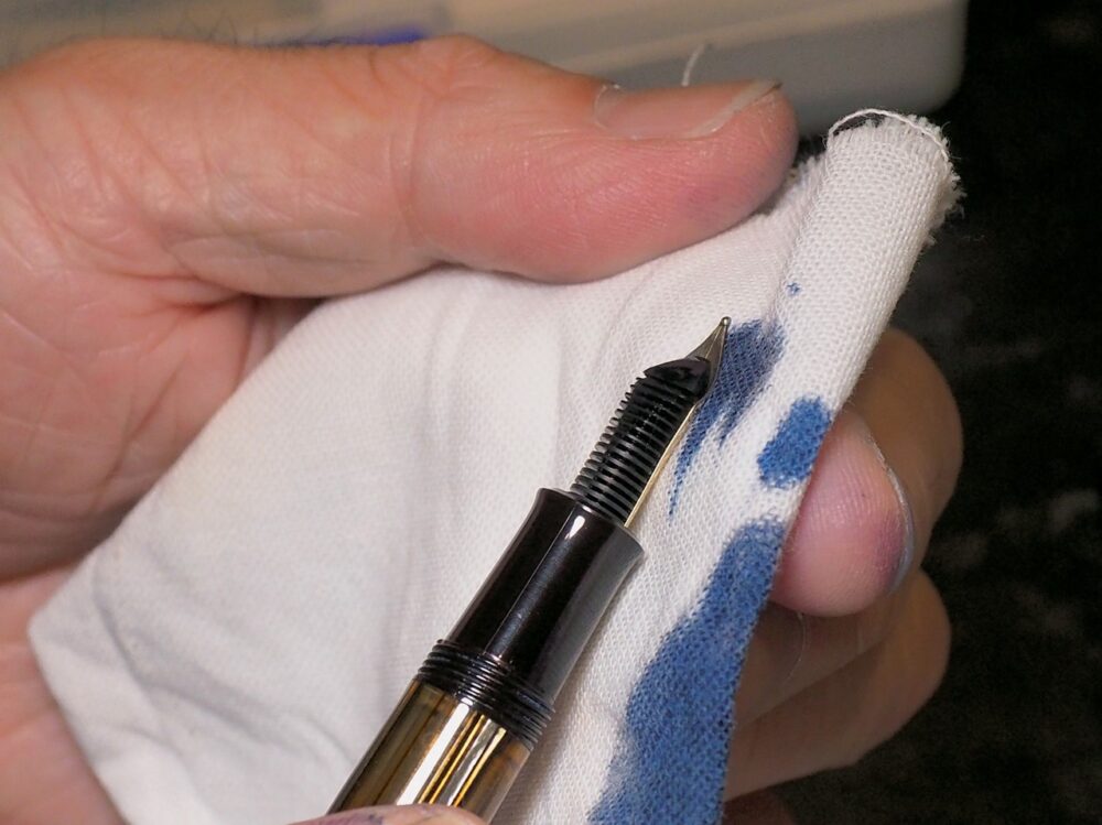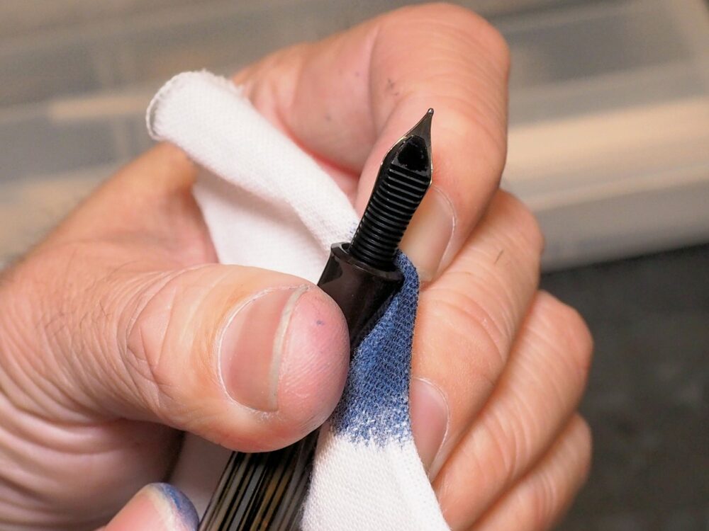 ペン先やペン芯に付いたインクをきれいに拭き取り、胴軸を戻す。