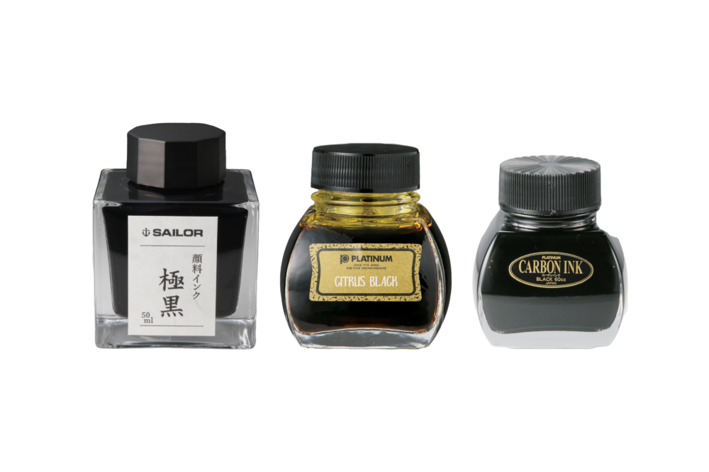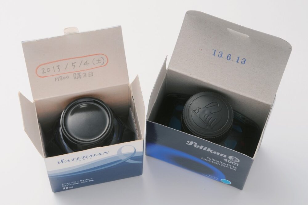 インクの大多数は染料。その中でも文字を確実に保存するために古典的なブルーブラックを製造しているメーカーや、筆記保存性に優れた顔料インクを作っているメーカーもある。