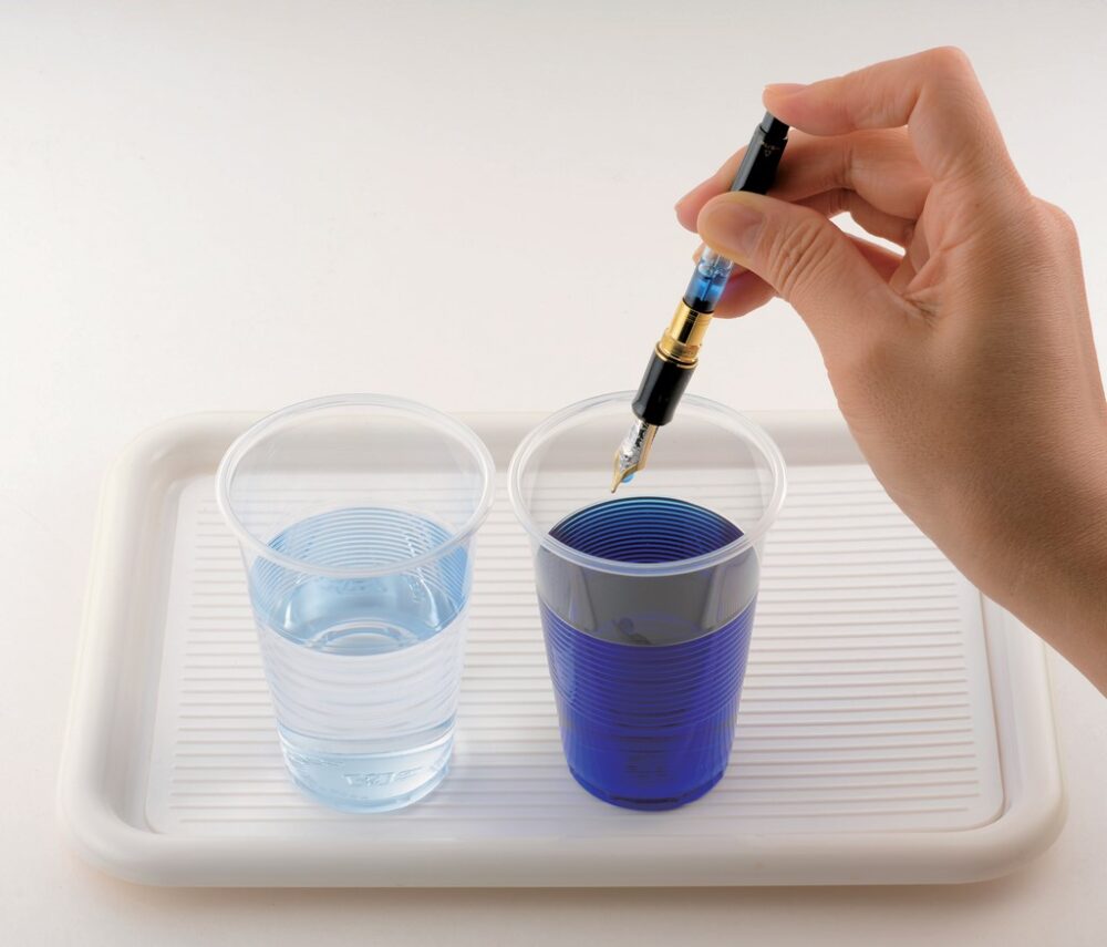 洗浄は正しい書き方と並ぶ万年筆を良い状態に保つ流儀。インクが残ったまま長期間放置すると内部でインクが固まり、果ては要修理になる。正しい方法を覚えて適度に洗浄することが、インク出を快適に保つことにつながる。